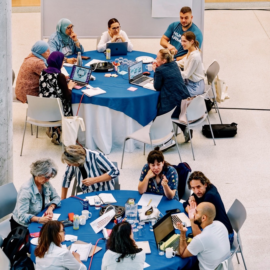 Au sein des équipes multidisciplinaires, les participants mettent leurs talents en commun, collaborent entre pairs, dans une dynamique d’horizontalité falorisant l'apprentissage mutuel et la construction d'une réalité et d'objectifs partagés.