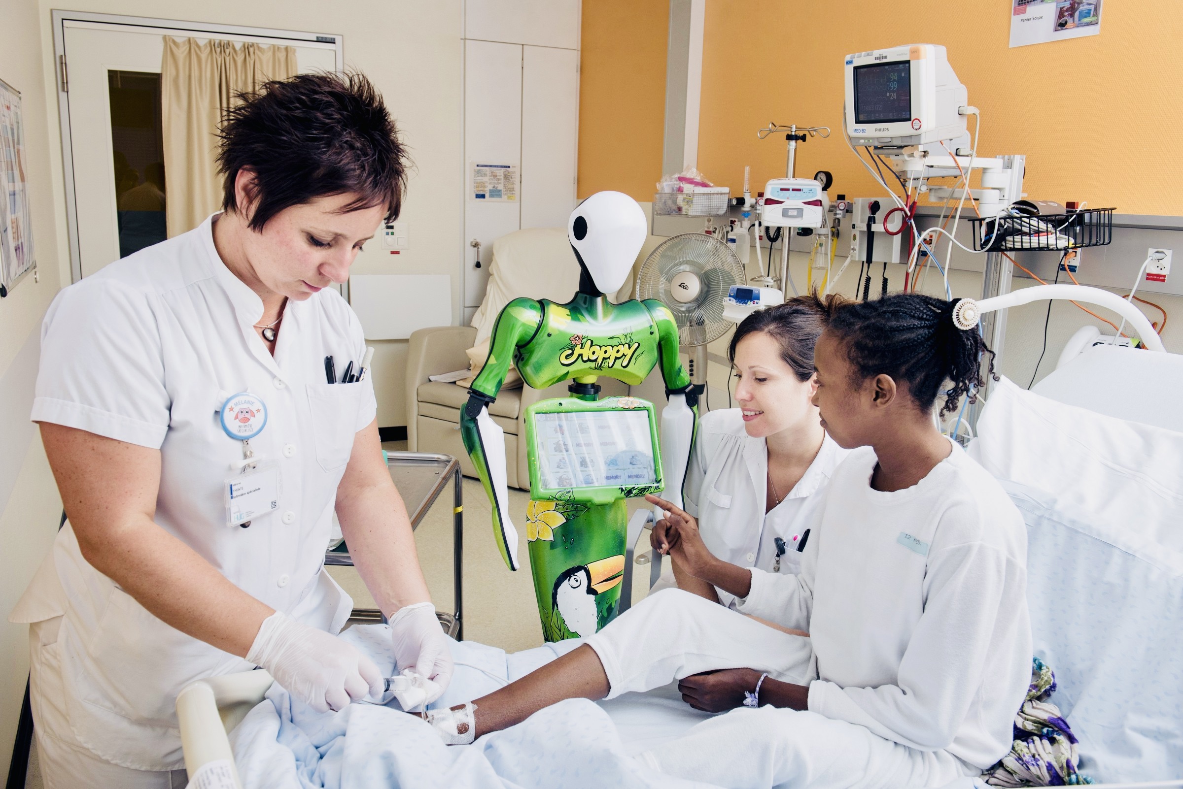 Des robots interactifs pour distraire les enfants hospitalisés grâce à une application développée à base d’iconographies.